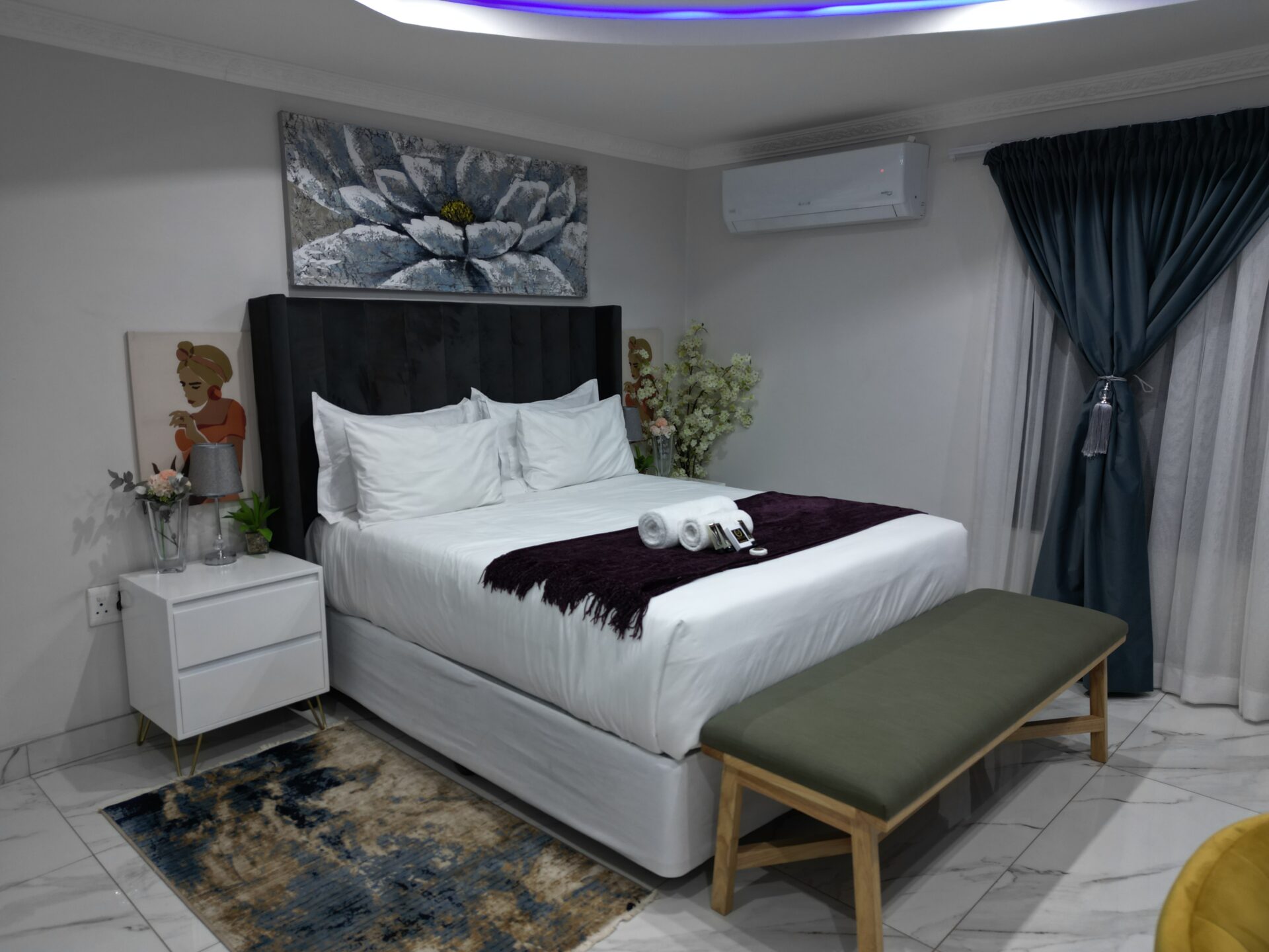 - Amenities: Air-conditioned, Bar Fridge, Bathtub, Free wi-fi, Laundry, Microwave, Private bathroom, Private Garden, Secured Free parking, Shower, Smart TV, Swimming Pool